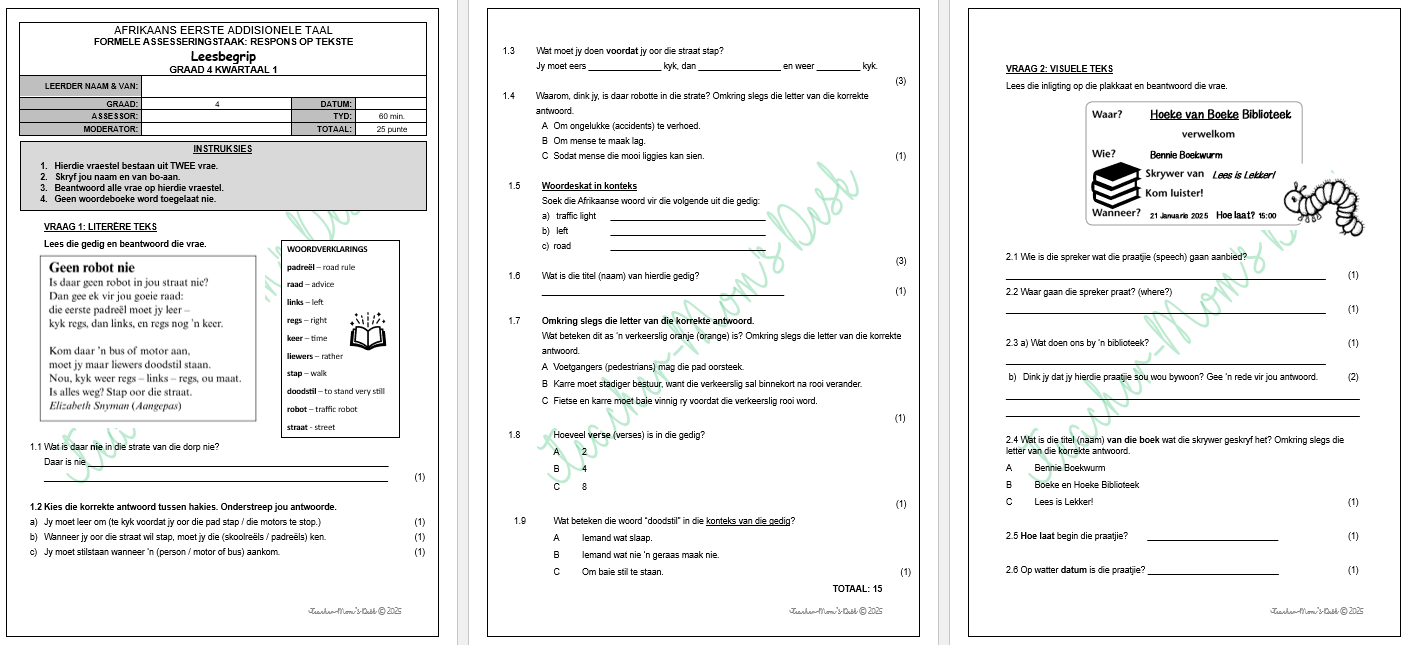 AFRIKAANS EAT FAT GR 4 KW 1 2025 LEESBEGRIP & TAAL
