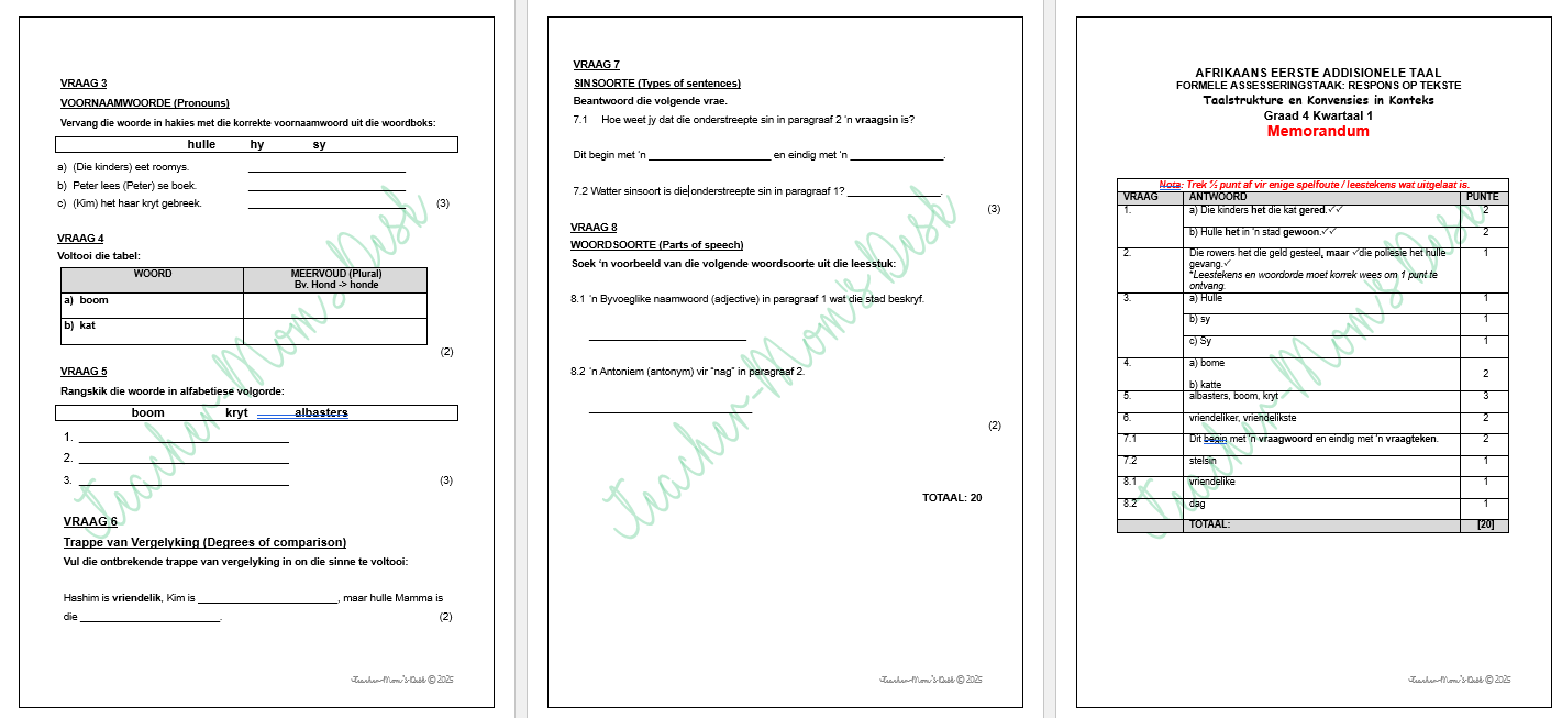 - 1 x Taalstrukture en Konvensies in Konteks (20 punte)