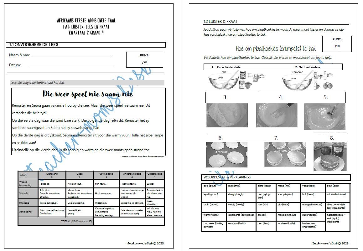 - Luister & Praat aktiwitiete (Onvoorbereide lees + luisterbegrip)