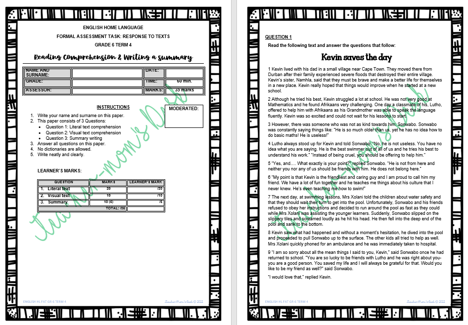 ENGLISH HOME LANGUAGE FAT: Response to texts Grade 6 Term 4